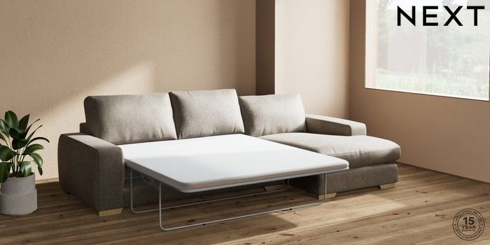 7.0.3 Buy Houghton Deep Relaxed Sit Sofa Chaise Bed - Right Hand Cotswold Chenille Mid Mink Brown Large Square Angle - Light from the Next UK online shop Click here to use our accessible website