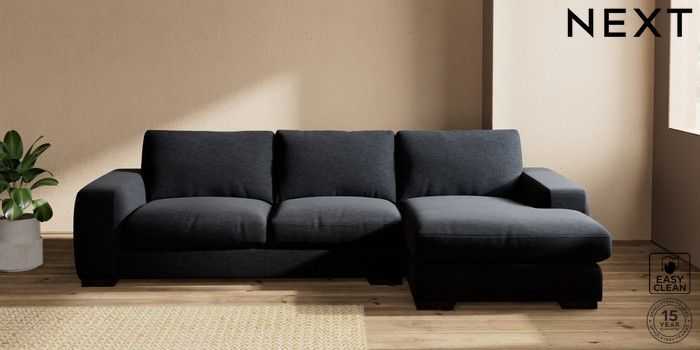 7.2.6 Buy Houghton Deep Relaxed Sit Sofa Chaise Bed - Right Hand Fine Chenille Easy Clean Black Large Square Angle - Dark from the Next UK online shop Click here to use our accessible website