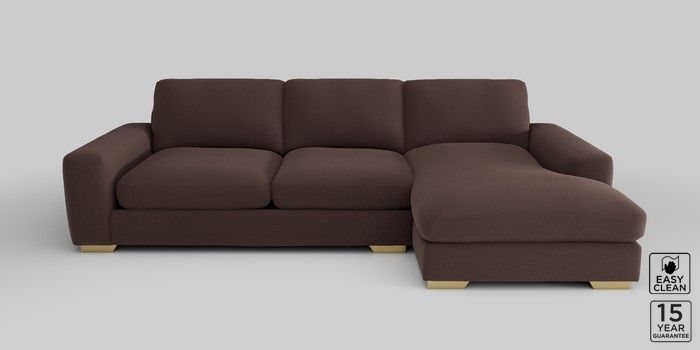 6.12.1 Buy Houghton Deep Relaxed Sit Sofa Chaise Bed - Right Hand Fine Chenille Easy Clean Chocolate Brown Large Square Angle - Brushed Brass from the Next UK online shop Click here to use our accessible website