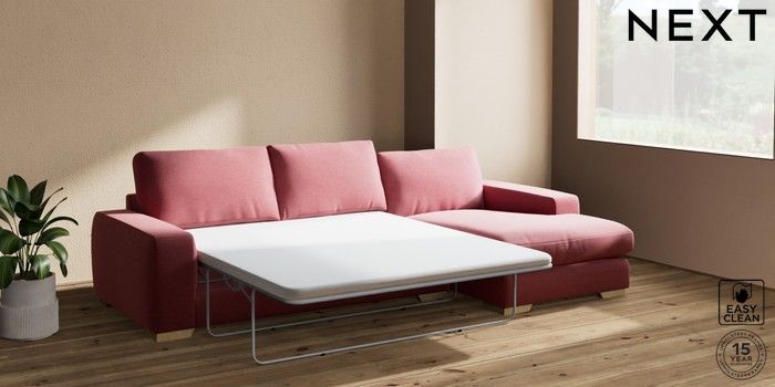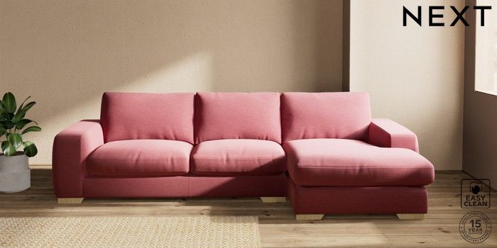 7.2.6 Buy Houghton Deep Relaxed Sit Sofa Chaise Bed - Right Hand Fine Chenille Easy Clean Mid Pink Large Square Angle - Light from the Next UK online shop Click here to use our accessible website