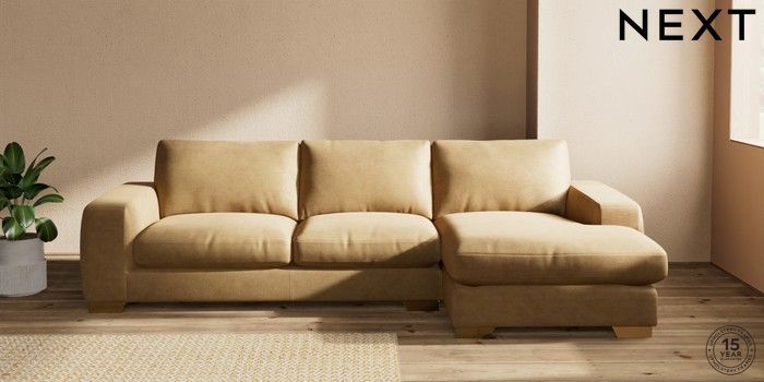 7.0.3 Buy Houghton Deep Relaxed Sit Sofa Chaise Bed - Right Hand Luxe Chenille Honey Yellow Large Square Angle - Brushed Brass from the Next UK online shop Click here to use our accessible website