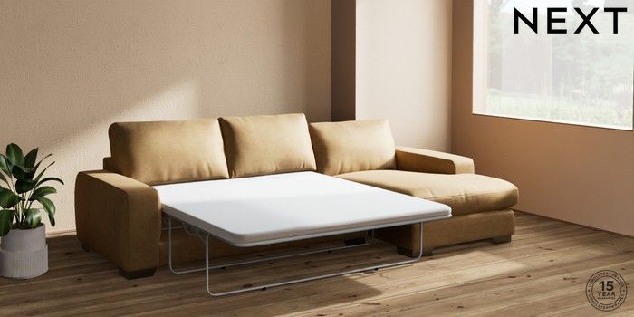 7.0.3 Buy Houghton Deep Relaxed Sit Sofa Chaise Bed - Right Hand Luxe Chenille Honey Yellow Large Square Angle - Gunmetal from the Next UK online shop Click here to use our accessible website