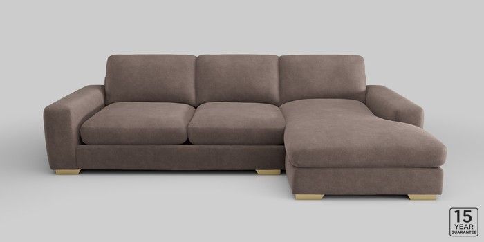 6.12.1 Buy Houghton Deep Relaxed Sit Sofa Chaise Bed - Right Hand Luxe Chenille Mink Brown Large Square Angle - Brushed Brass from the Next UK online shop Click here to use our accessible website