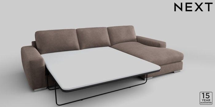 6.12.1 Buy Houghton Deep Relaxed Sit Sofa Chaise Bed - Right Hand Luxe Chenille Mink Brown Large Square Angle - Chrome Metal from the Next UK online shop Click here to use our accessible website