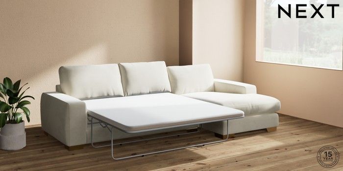 7.0.3 Buy Houghton Deep Relaxed Sit Sofa Chaise Bed - Right Hand Luxe Chenille Oyster Large Square Angle - Brushed Brass from the Next UK online shop Click here to use our accessible website