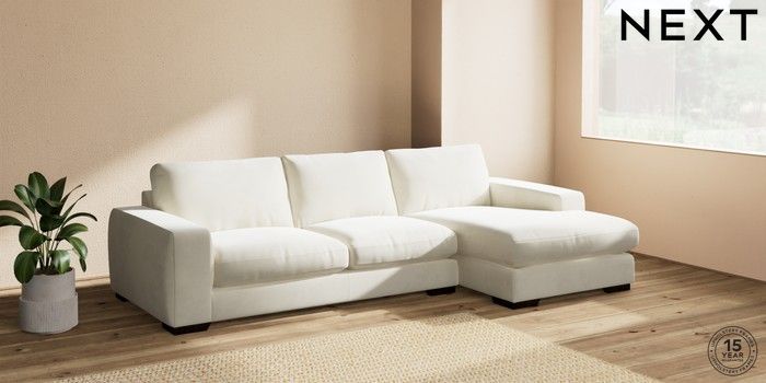 7.0.3 Buy Houghton Deep Relaxed Sit Sofa Chaise Bed - Right Hand Luxe Chenille Oyster Large Square Angle - Dark from the Next UK online shop Click here to use our accessible website