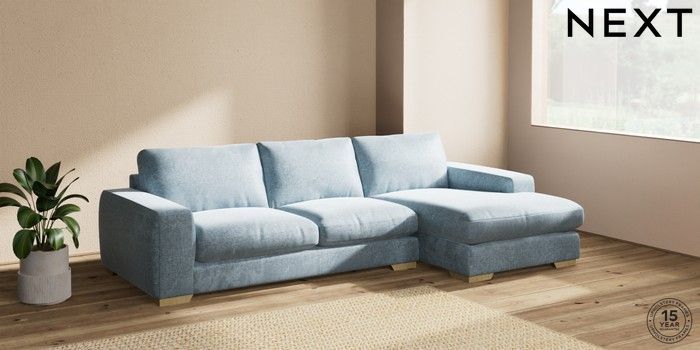 7.2.6 Buy Houghton Deep Relaxed Sit Sofa Chaise Bed - Right Hand Plush Chenille Light Blue Large Square Angle - Light from the Next UK online shop Click here to use our accessible website