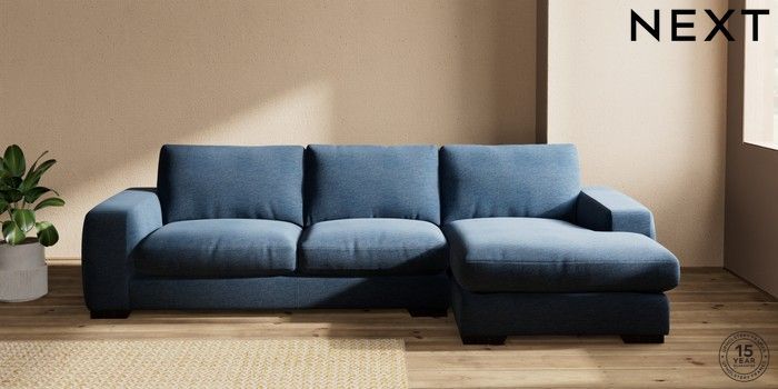 7.0.3 Buy Houghton Deep Relaxed Sit Sofa Chaise Bed - Right Hand Ripple Chenille Dark Blue Large Square Angle - Dark from the Next UK online shop Click here to use our accessible website