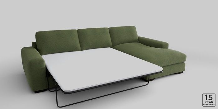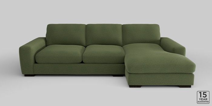6.12.1 Buy Houghton Deep Relaxed Sit Sofa Chaise Bed - Right Hand Ripple Chenille Mid Moss Green Large Square Angle - Dark from the Next UK online shop Click here to use our accessible website