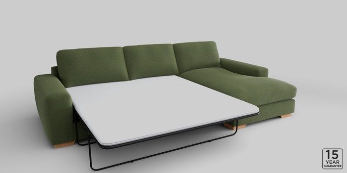 6.12.1 Buy Houghton Deep Relaxed Sit Sofa Chaise Bed - Right Hand Ripple Chenille Mid Moss Green Large Square Angle - Light from the Next UK online shop Click here to use our accessible website