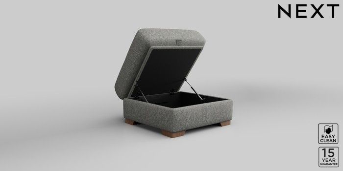 6.12.1 Buy Houghton Deep Relaxed Sit Storage Footstool Chunky Boucle Easy Clean Mid Grey Square Angle - Gunmetal from the Next UK online shop Click here to use our accessible website