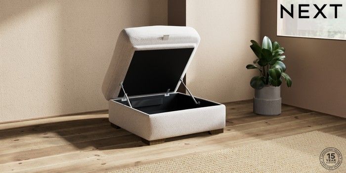 7.2.6 Buy Houghton Deep Relaxed Sit Storage Footstool Multi Weave Oyster Square Angle - Mid from the Next UK online shop Click here to use our accessible website