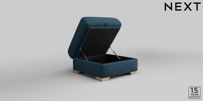 6.12.1 Buy Houghton Deep Relaxed Sit Storage Footstool Cotswold Chenille Dark Blue Square Angle - Brushed Brass from the Next UK online shop Click here to use our accessible website