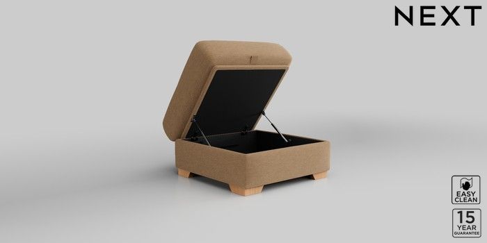 6.12.1 Buy Houghton Deep Relaxed Sit Storage Footstool Chunky Weave Mid Blue Square Angle - Light from the Next UK online shop Click here to use our accessible website