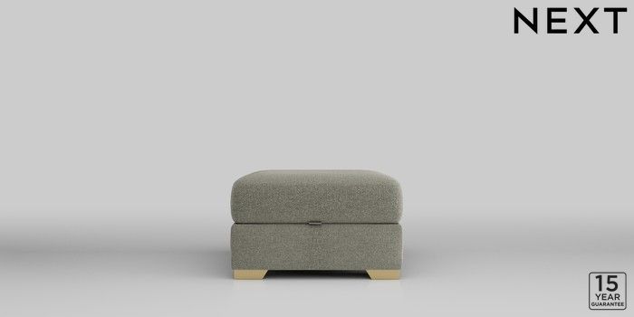 6.12.1 Buy Houghton Deep Relaxed Sit Storage Footstool Chunky Marl Light Olive Green Square Angle - Brushed Brass from the Next UK online shop Click here to use our accessible website