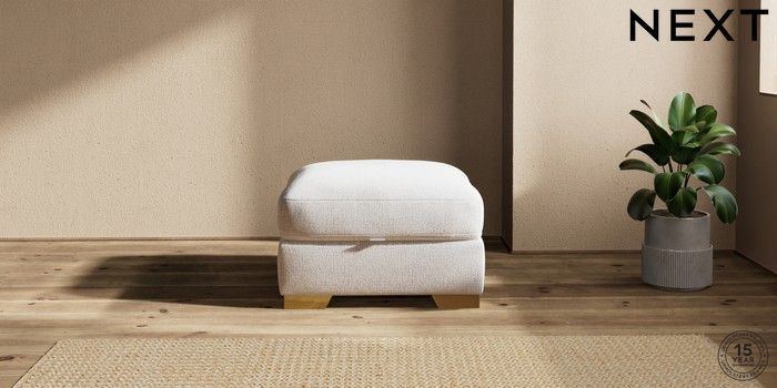 7.2.6 Buy Houghton Deep Relaxed Sit Storage Footstool Multi Weave Oyster Square Angle - Brushed Brass from the Next UK online shop Click here to use our accessible website