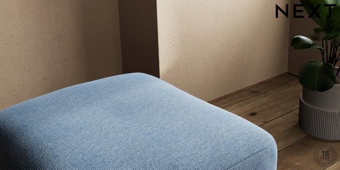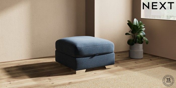 7.0.3 Buy Houghton Deep Relaxed Sit Storage Footstool Ripple Chenille Dark Blue Square Angle - Chrome Metal from the Next UK online shop Click here to use our accessible website