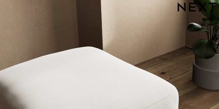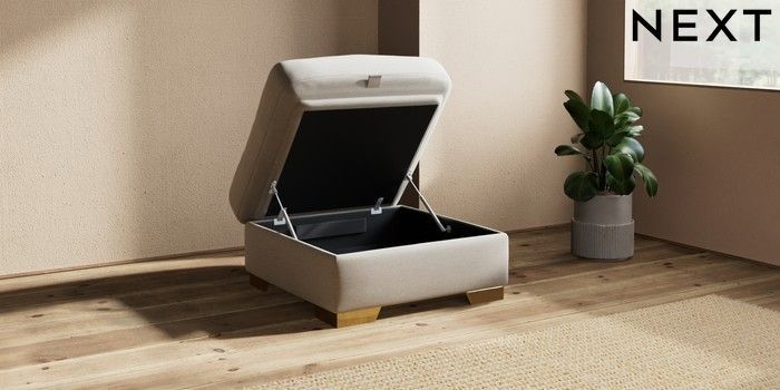 6.12.1 Buy Houghton Deep Relaxed Sit Storage Footstool Ripple Chenille Light Natural Square Angle - Brushed Brass from the Next UK online shop Click here to use our accessible website