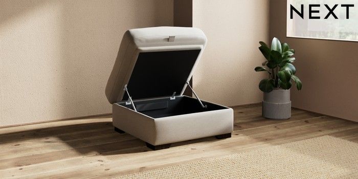 6.12.1 Buy Houghton Deep Relaxed Sit Storage Footstool Ripple Chenille Light Natural Square Angle - Dark from the Next UK online shop Click here to use our accessible website