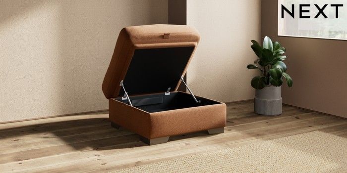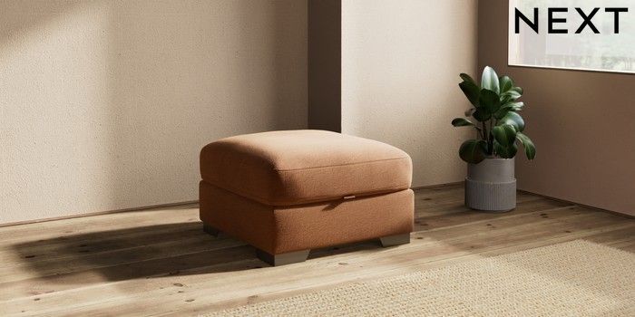 6.12.1 Buy Houghton Deep Relaxed Sit Storage Footstool Ripple Chenille Mid Rust Brown Square Angle - Gunmetal from the Next UK online shop Click here to use our accessible website