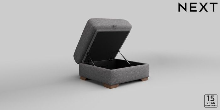 6.12.1 Buy Houghton Deep Relaxed Sit Storage Footstool Studio Chenille Mid Grey Square Angle - Chrome Metal from the Next UK online shop Click here to use our accessible website