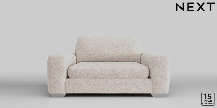 6.11.4 Buy Houghton Deep Sit 2 Seater Small Sofa Chunky Chenille Oyster Large Square Angle - Chrome Metal from the Next UK online shop Click here to use our accessible website