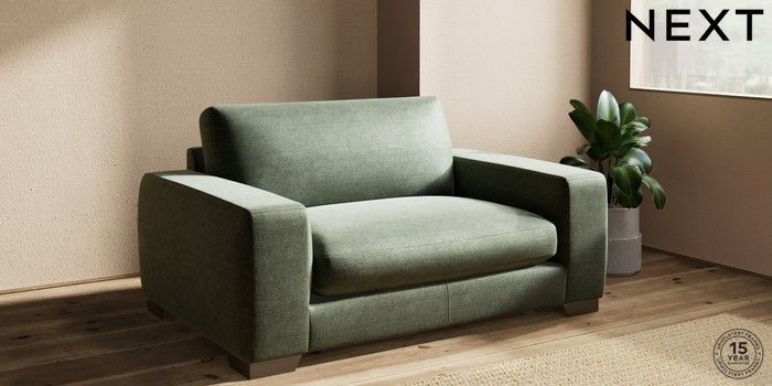 7.0.3 Buy Houghton Deep Sit 2 Seater Small Sofa Luxe Chenille Mid Green Large Square Angle - Gunmetal from the Next UK online shop Click here to use our accessible website