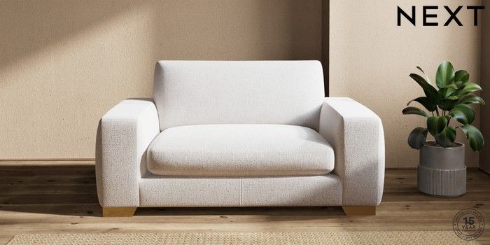 7.2.6 Buy Houghton Deep Sit 2 Seater Small Sofa Multi Weave Oyster Large Square Angle - Brushed Brass from the Next UK online shop Click here to use our accessible website