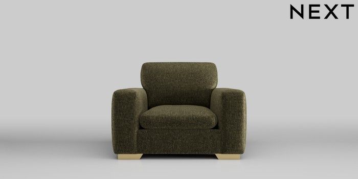 6.12.13 Buy Houghton Deep Sit 2 Seater Small Sofa Plush Chenille Moss Green Large Square Angle - Brushed Brass from the Next UK online shop Click here to use our accessible website