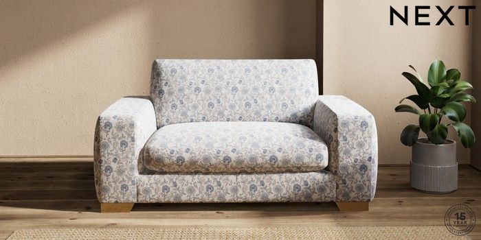 7.3.1 Buy Houghton Deep Sit 2 Seater Small Sofa Relaxed Linen Look Print Woodblock Floral Blue Large Square Angle - Brushed Brass from the Next UK online shop Click here to use our accessible website