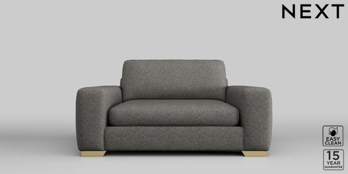 6.11.4 Buy Houghton Deep Sit 2 Seater Small Sofa Tweedy Blend Easy Clean Dark Grey Large Square Angle - Brushed Brass from the Next UK online shop Click here to use our accessible website