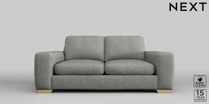 6.11.8 Buy Houghton Deep Sit 3 Seater Small Sofa Chunky Boucle Easy Clean Mid Grey Large Square Angle - Brushed Brass from the Next UK online shop Click here to use our accessible website