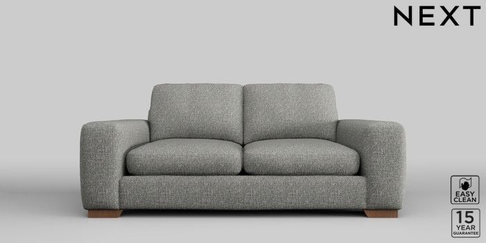 6.11.4 Buy Houghton Deep Sit 3 Seater Small Sofa Chunky Boucle Easy Clean Mid Grey Large Square Angle - Mid from the Next UK online shop Click here to use our accessible website