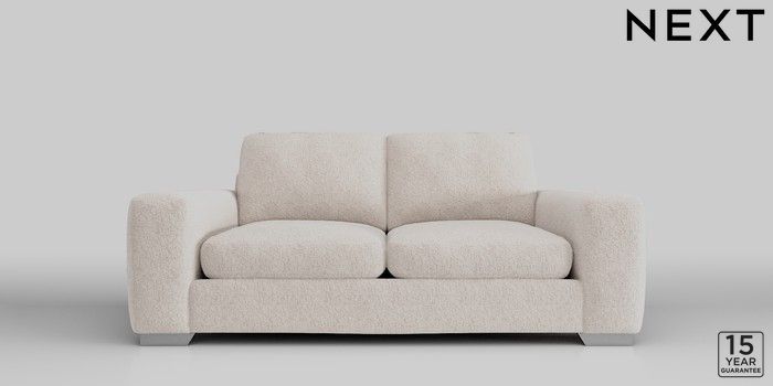 6.11.4 Buy Houghton Deep Sit 3 Seater Small Sofa Chunky Chenille Oyster Large Square Angle - Chrome Metal from the Next UK online shop Click here to use our accessible website