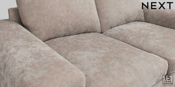 6.12.13 Buy Houghton Deep Sit 3 Seater Small Sofa Distressed Velour Mid Natural Large Square Angle - Chrome Metal from the Next UK online shop Click here to use our accessible website