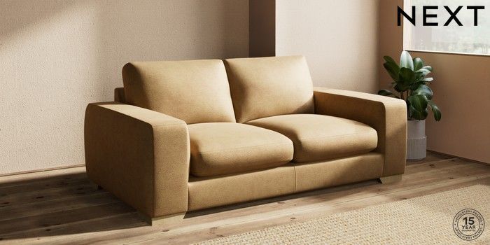 7.0.3 Buy Houghton Deep Sit 3 Seater Small Sofa Luxe Chenille Honey Yellow Large Square Angle - Light from the Next UK online shop Click here to use our accessible website