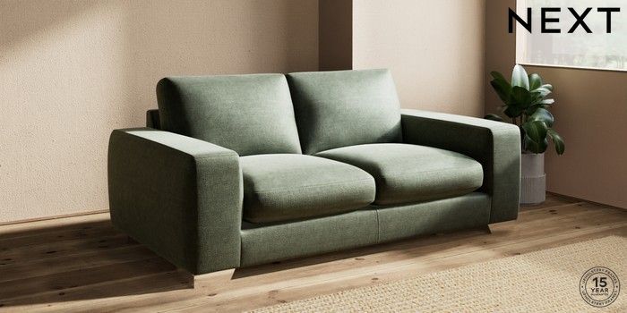 7.0.3 Buy Houghton Deep Sit 3 Seater Small Sofa Luxe Chenille Mid Green Large Square Angle - Chrome Metal from the Next UK online shop Click here to use our accessible website