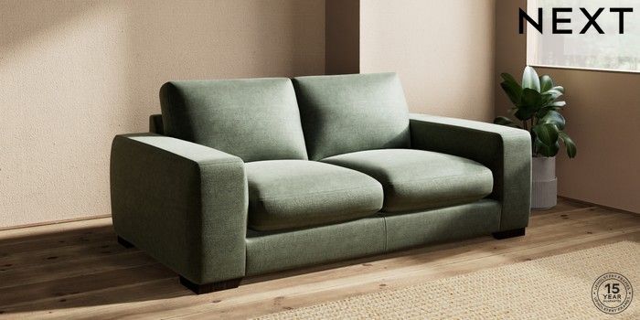 7.0.3 Buy Houghton Deep Sit 3 Seater Small Sofa Luxe Chenille Mid Green Large Square Angle - Dark from the Next UK online shop Click here to use our accessible website
