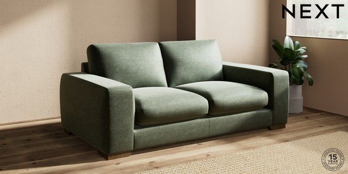 7.0.3 Buy Houghton Deep Sit 3 Seater Small Sofa Luxe Chenille Mid Green Large Square Angle - Mid from the Next UK online shop Click here to use our accessible website