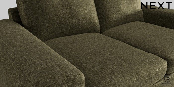 6.11.4 Buy Houghton Deep Sit 3 Seater Small Sofa Plush Chenille Moss Green Large Square Angle - Gunmetal from the Next UK online shop Click here to use our accessible website