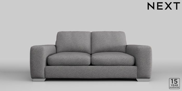 6.11.4 Buy Houghton Deep Sit 3 Seater Small Sofa Studio Chenille Mid Grey Large Square Angle - Chrome Metal from the Next UK online shop Click here to use our accessible website