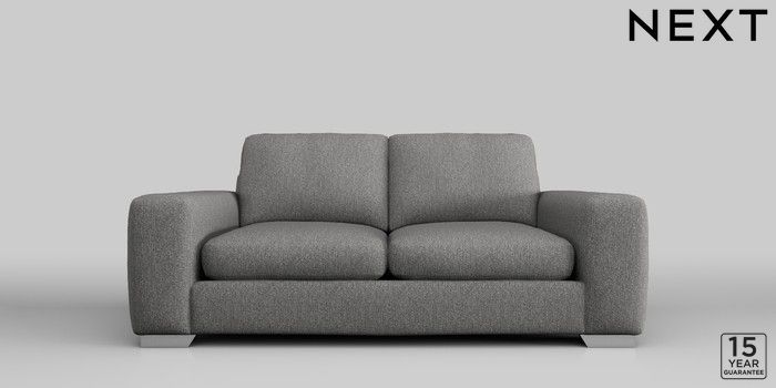 6.11.4 Buy Houghton Deep Sit 3 Seater Small Sofa Tweedy Chenille Dark Grey Large Square Angle - Chrome Metal from the Next UK online shop Click here to use our accessible website