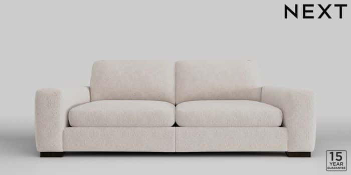 6.11.4 Buy Houghton Deep Sit 3 Seater Sofa Chunky Chenille Oyster Large Square Angle - Dark from the Next UK online shop Click here to use our accessible website