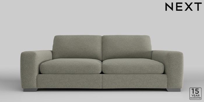 6.12.1 Buy Houghton Deep Sit 3 Seater Sofa Chunky Marl Light Olive Green Large Square Angle - Gunmetal from the Next UK online shop Click here to use our accessible website