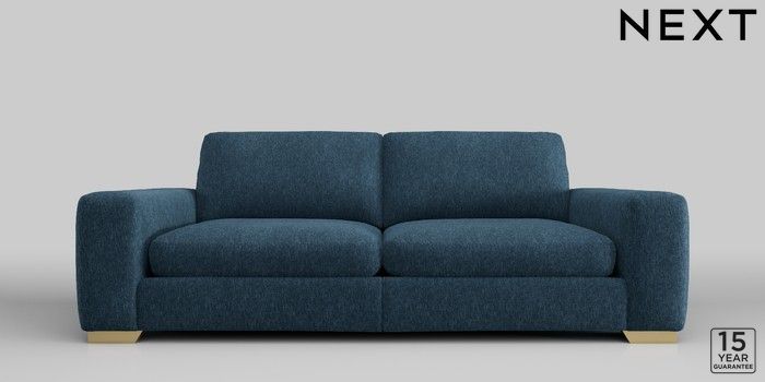 6.12.1 Buy Houghton Deep Sit 3 Seater Sofa Cotswold Chenille Dark Blue Large Square Angle - Brushed Brass from the Next UK online shop Click here to use our accessible website