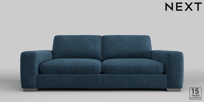 6.12.1 Buy Houghton Deep Sit 3 Seater Sofa Cotswold Chenille Dark Blue Large Square Angle - Gunmetal from the Next UK online shop Click here to use our accessible website