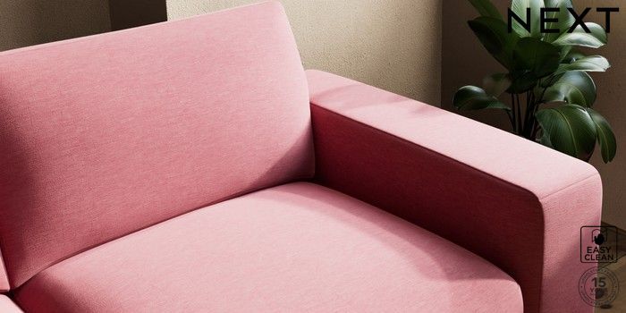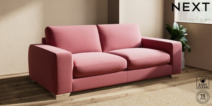 7.2.6 Buy Houghton Deep Sit 3 Seater Sofa Fine Chenille Easy Clean Mid Pink Large Square Angle - Chrome Metal from the Next UK online shop Click here to use our accessible website