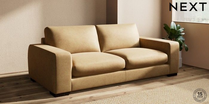 7.0.3 Buy Houghton Deep Sit 3 Seater Sofa Luxe Chenille Honey Yellow Large Square Angle - Dark from the Next UK online shop Click here to use our accessible website