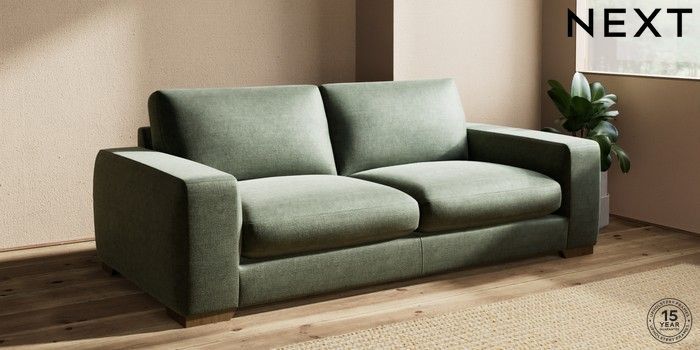 7.0.3 Buy Houghton Deep Sit 3 Seater Sofa Luxe Chenille Mid Green Large Square Angle - Mid from the Next UK online shop Click here to use our accessible website