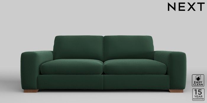6.11.4 Buy Houghton Deep Sit 3 Seater Sofa Plush Velvet Easy Clean Bottle Green Large Square Angle - Mid from the Next UK online shop Click here to use our accessible website